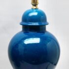 Inspired by a centuries-old technique of Chinese ceramics, this elegant table lamp is a bright and dramatic shade of turquoise with a fine crackle glaze. If wanted we have the same on in-stock so we have a pair.