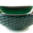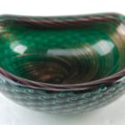 Alfredo Barbini ‘sfumato’ bowl, V.A.M.S.A., c. 1930/40″ A bowl in green/blue with an outside decor of fumato combined with controlled bubbles and an interior design of spiralled aventurine filigrana.