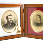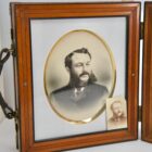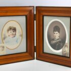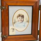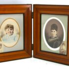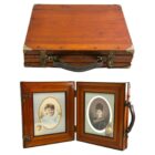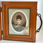 Antique large wooden double folding picture frame for traveling 1870s