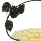 The separate handmade wrought iron carrier is measured to exactly secure the plate without any risk of slippage. It has been further embellished with a few black metal leaves and sprigs to soften the lines and create a practical yet unobtrusive centerpiece for cake at your afternoon tea table in Art Deco style. Also a good flat base for a centerpiece flower-arrangement
