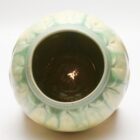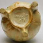 Impressed with diamonds and swags in the body, and decorated with carefully controlled drip glazes in ivory and green shades.