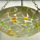 Photography fails to capture the simple elegant illumination provided by this lamp.Fitting messing pendant ceiling light with fixing to hold a stylish Belgian Art Deco lampshade. Good distribution of darker and lighter shades.A perfect example of Art deco decorative arts, an original piece, made in the period 1930.Measures: Shade 31cm x 15 cm.We are happy to adjust the height to your wishes at no extra cost.In excellent condition and in full working order. New Wiring originel fitting E27And safe for immediate usage in the world.With best wishes. Geert.