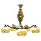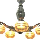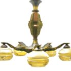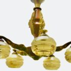 Art Deco chandelier pendant on chain with five mounts of solid brass,