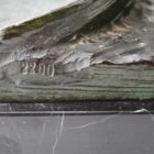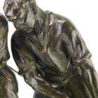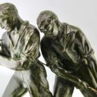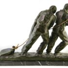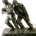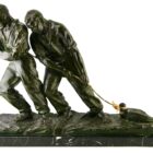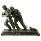 Modeled and cast as two men pulling a boat from the water, marble plinth.