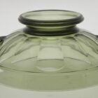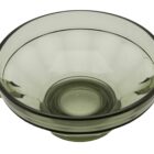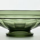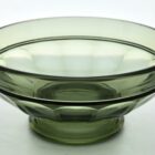 The circular version of this bowl design in amber glass, made by Val Saint Lambert for their Luxval series. The vase is marked on the inside: “Val Saint Lambert Belgique” and listed in the catalogue of Luxval, 1935,