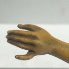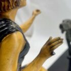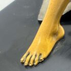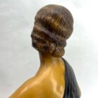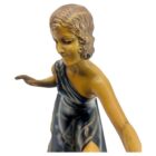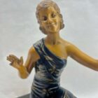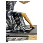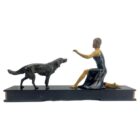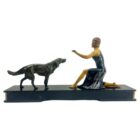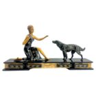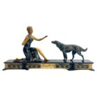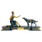 Art Deco with stylized Spelter Representation of Dog and Women on Marble Plint