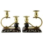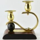 Art Deco wooden and brass pair of candlesticks, 1930s