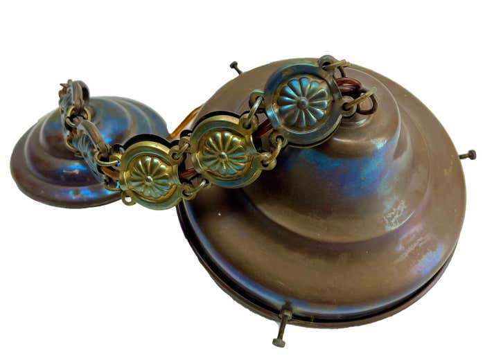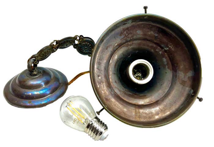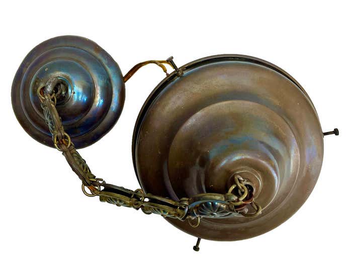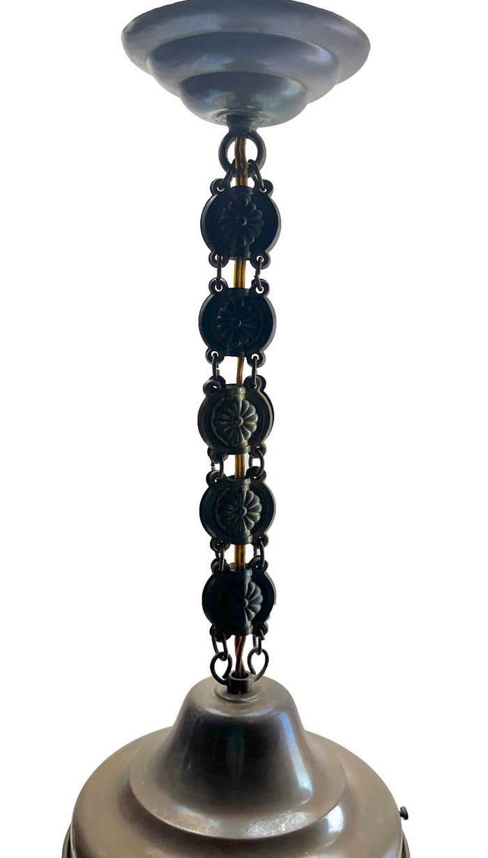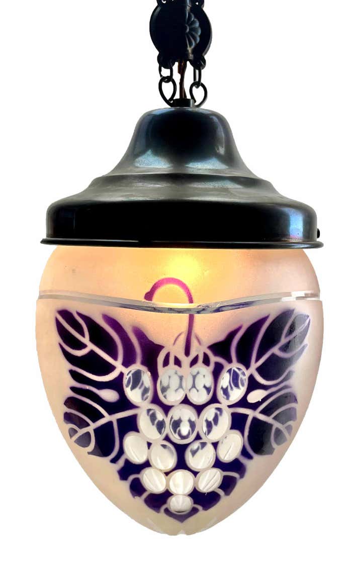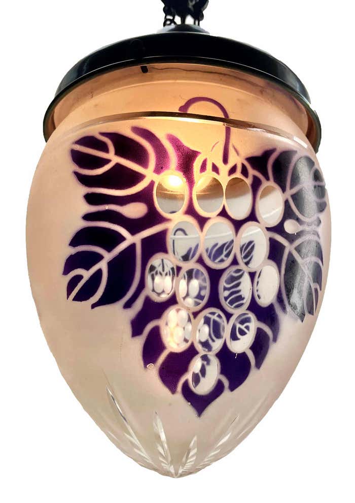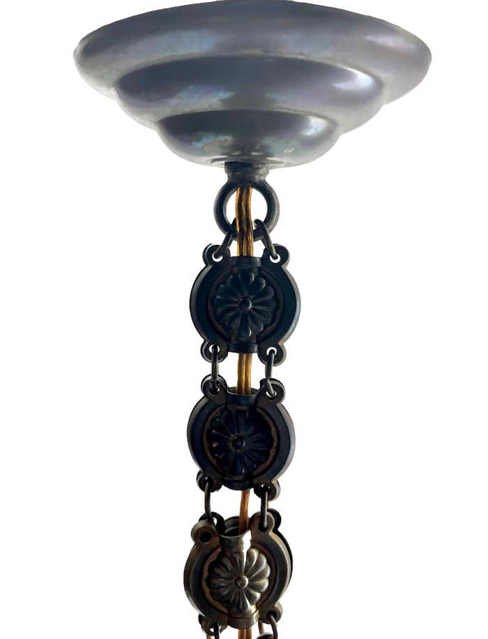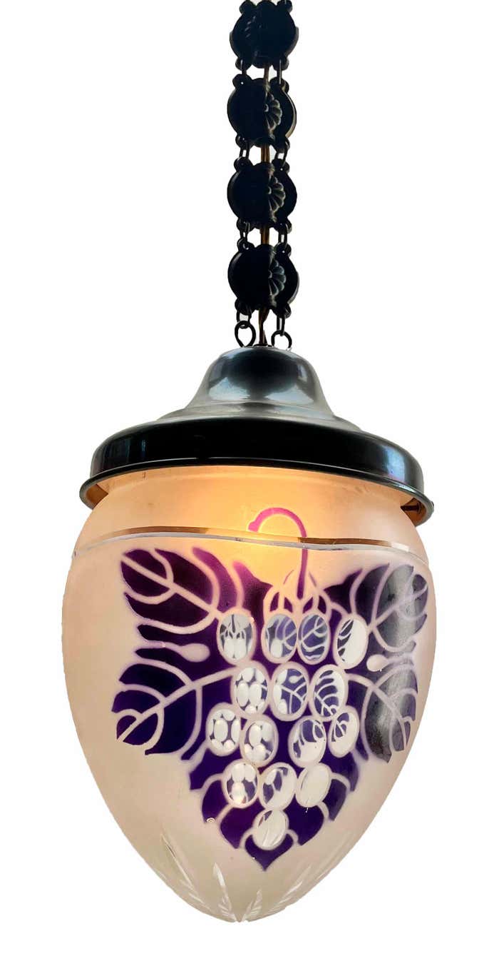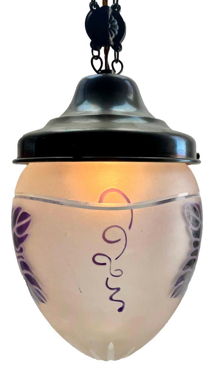 Chandelier Attributed to Luneville, 1900sBeautiful Hand Decorated ChainPhotography fails to capture the simple elegant illumination provided by this lamp.In excellent condition and in full working order originel fitting E27With Original PatinaSize shade: H 21 cm x d 16 cmAnd safe for immediate usage in the World.Please don’t hesitate to get in touch with any further questions. With Best Wishes Geert Niessen