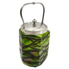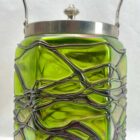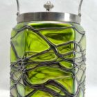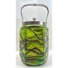 Art Nouveau Cookie jar iridescent glass by Loetz’ with LidSubtle, hand blown glass vase in the Art Art Nouveau style. Special color and technique for any collector.Looks simply stunning.
