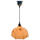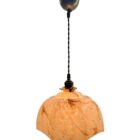 Art Nouveau ceiling lamp.Photography fails to capture the simple elegant illumination provided by this lamp.Fitting messing pendant ceiling light with fixing to hold a stylish Belgian Art Deco lampshade. Good distribution of darker and lighter bleu shades.A perfect example of Art Nouveau decorative arts, an original piece, made in the period 1930.Measures: Shade 26 cm x 13 cm.On an adjustable wiring.We are happy to adjust the height to your wishes at no extra cost.In excellent condition and in full working order. New Wiring originel fitting E27And safe for immediate usage in the world.With best wishes. Geert.