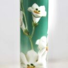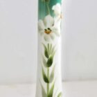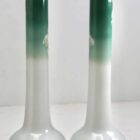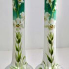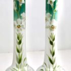 Art Nouveau Opaline glass Handmade and Hand Painted pair of vases, France, 1920sHandmade and hand-glazed in brilliant colored Iris flowers details.Made in FranceArt Nouveau period 1920 fine quality.The pieces are in excellent condition and a real beauty.