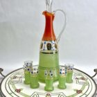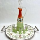 Art Nouveau tile panel with Florale Decoration with Carafe and 6 Shot GlassesIn very nice used condition, circa 1900.Beautiful Art Nouveau glazed porcelain tableau framed by Metal Handles A whole is in a Good ConditionNo cracks or chipjes in tableau. Size Carafe 31 cm x 9.5 cm / 12.20 inch x 3.74 inchPlease don’t hesitate to get in touch with any further questions.??With best wishes, Geert?Early Bird Gallery