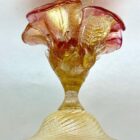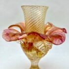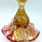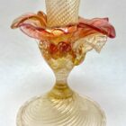 Barovier & Toso Decorative Murano Candelestick with Gold Rope Cordonato Oro.A Classic example of ‘cordonato oro’ (gold rope) technique with lobed and ribbed sections creating the main vessel and pulled at opposite ends to make a scrolled handle. This unsigned piece can be attributed to Barovier & Toso and would date to the late 1950s or 1960s. The spirals of gold inclusions are nicely controlled and centred within the ribs and the base is finely polished.A fine example of craftsmanship made in Murano using well-established traditions of Venetian glass.This item is not marked (usually such items from Barovier were only given a paper label).We specialise in Art Nouveau, Art Deco and Vintage lighting:With best wishes, Geert.