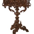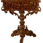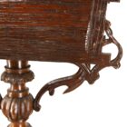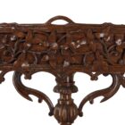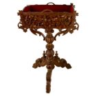 The Wooden Planter features a pierced carving of a floral basket flanked by scrolled Grapevines. And sides of the box are carved to look like rough wooden boards. Raised on a Turned and Hand Carved pedestal, the pedestal are joined whit two carved brackets, which provide stable support. The pedestal terminates in three carved feet.