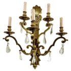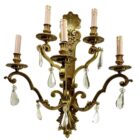 Bronze sconce (electroliers) in the Louis XVI style, with 5 candle-fittings for electric lamps.Decorated with ribbons and drapery with tassels and each having 5 arms with rococo scrolls and detail supporting a faux candle in white.In excellent condition and in full working order. Fittings for E14 (candle-shaped) standard bulbs.With original patina on Bronze parts.Elegant and decorative.