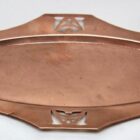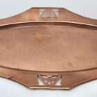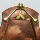 superb Jugendstil copper and brass Tray by the famous C.D.E Werks of Carl Deffner of Esslingen, Germany. which has the impress mark of a shield with crossed swords & CDE in between.