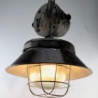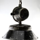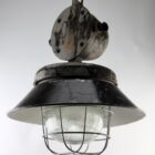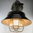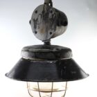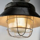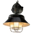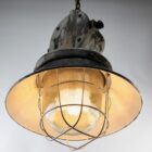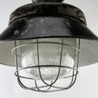Cast iron large industrial cage pendant lamp, Poland, 1940s