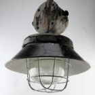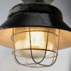 Cast iron large industrial cage pendant lamp, Poland, 1940s