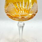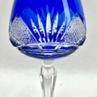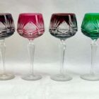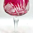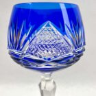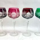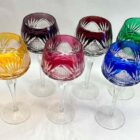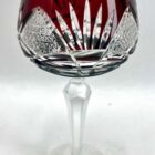 Vintage set of 6 cut to clear crystal stem glasses.Mix crystal (Bleikristall 24% Mundgeblasen Handgeschliffen) glassesClear demi crystal glass. Side facetted and toothed stem. The bowl with a colored overlay cut to clear.In best condition.
