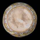 Purple or multi-coloured Delftware with chinoiserie landscapes are relatively rare, though versions in blue and purple, blue and yellow, green and purple are known, as well as three colour combinations like purple, yellow and green. A butter pot in this last colour combination was excavated from a cesspit in the grounds of the former Porcelain Bottle pottery in Delft. Multi-coloured chinoiserie decorations are painted especially on lobed dishes and also on beer mugs, covered spiced wine bowls and small plates. A purple, yellow and green painted beer mug in the Princessehof Ceramics Museum in Leeuwarden, The Netherlands, combines a chinoiserie landscape with a depiction of stadtholder prins Willem III, the later King William of England (Jongstra, p. 19).