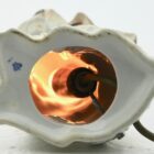 Porcelain figurine / air purifier / table lamp. Dog Frome, 1930s. Undamaged original condition. The lighting works. A small container on the back can be filled with fragrance oil. The oil evaporates due to the heat of the lamp. The air purifier is in very good, clean and undamaged state of conservation. Has large brown glass eyes.