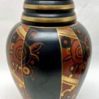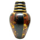 Famous rare Emile Lombard vase for Ghislain Belgium and a typical beautiful example of the art deco period and dates from circa 1930Earthenware -Faiencerie de Saint Ghislain, Belgium -Height 35 cm -Width 22 cm -Black background, copper neck, gilding and red/orange patterns.Art Deco ceramic vase in excellent condition (no crack, no repair to the ceramic).Floral decoration with FlowersSigned on bottom: 1803 2 and stamp.
