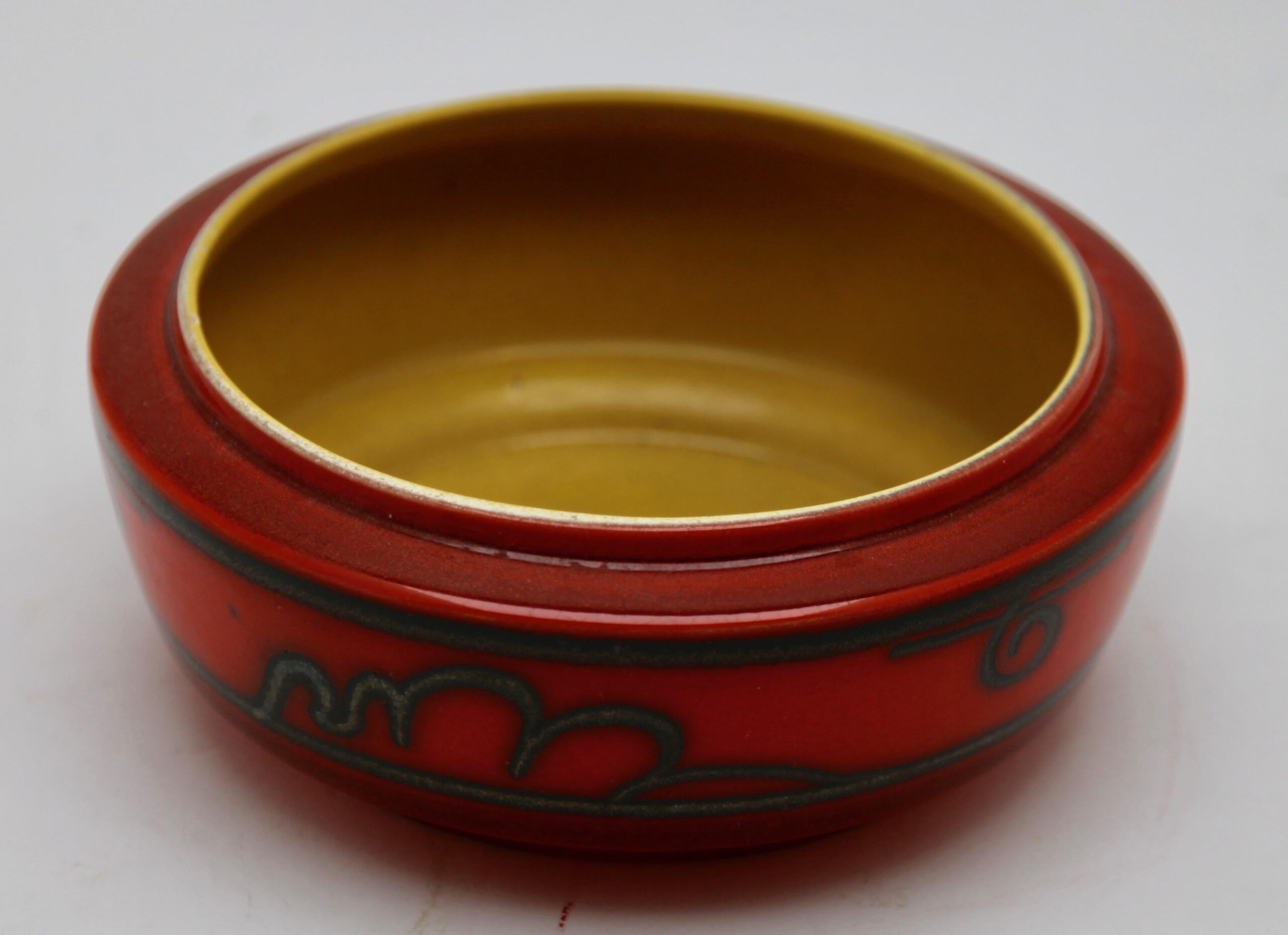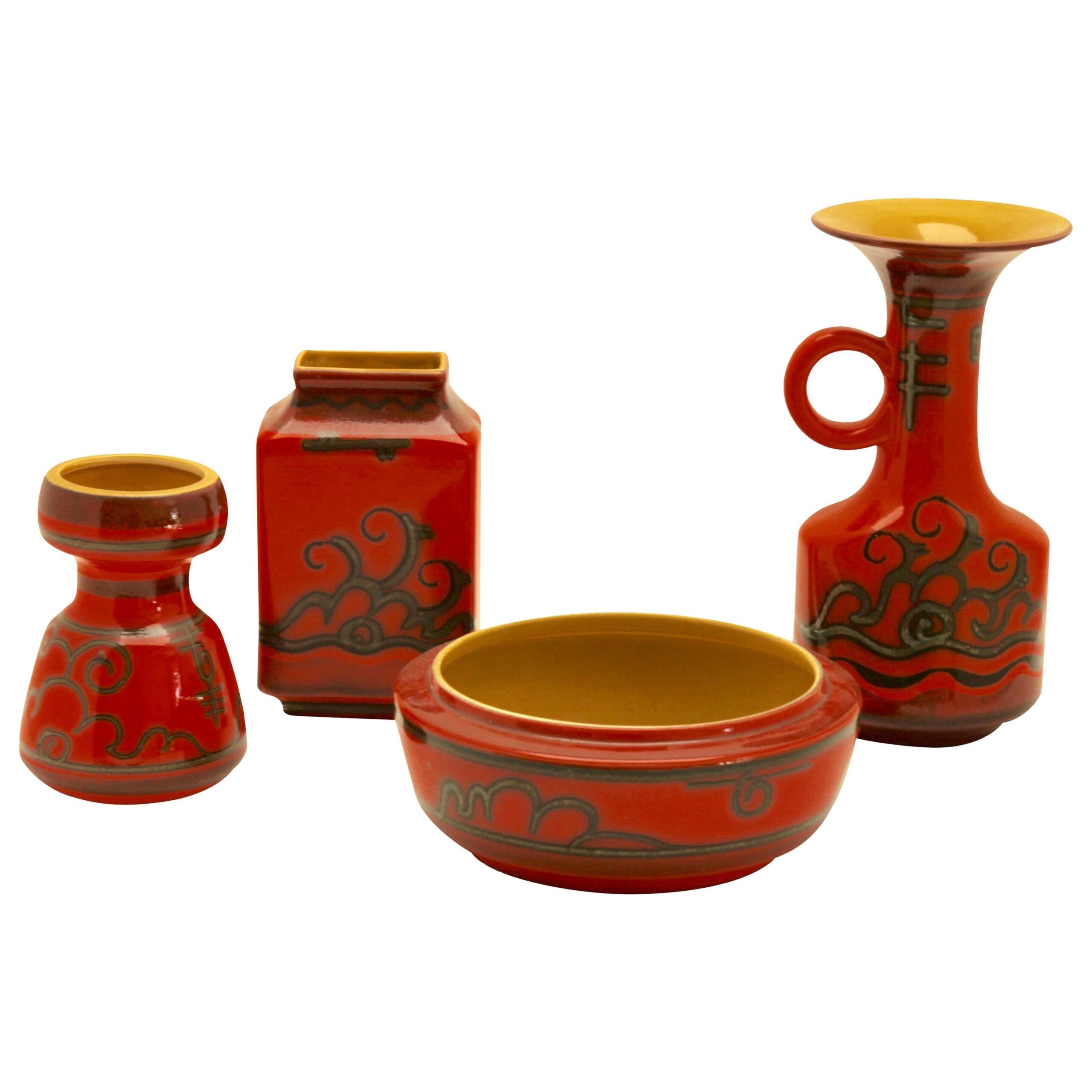 This range, inspired by Japanese motifs, was launched in 1968 and rapidly expanded with a diverse range of contemporary shapes. Each item is fully glazed on the inside with a sandy (pale orange) color.