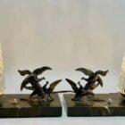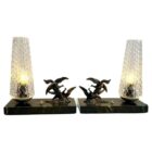 French Art Deco Table Lamps with Spelter Birds Motif