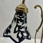 The 1920s, FranceA wonderful French Art Nouveau lamp. The stands are handmade in Solid Brass The Brass work is of excellent quality.Crowned with Pate de Verre shade.In excellent condition and in full working order having recently been re-wired. Fitting E14Photography fails to capture the simple elegance of illumination provided by this lamp.