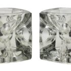 Pair of cube candlestick (ice cubes) in glass by Peill & Putzler.