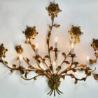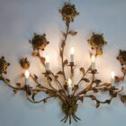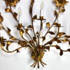 Hans Kögl Large gilded brass Flowers and floral leaf’s wall Mound lamp