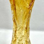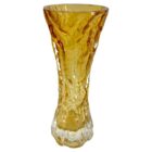 Impressions made from tree bark were first used to make moulds in the early 1970s, as factories investigated new ways to bring surface texture to glass objects. Some models are colored throughout while others have a colored core with a thick Sommerso (clear glass casing).These lovely examples are all in shades of amber with heavy glass that ensures stability for your arrangement as well as catching the light from all angles.piece is in excellent condition and show this technique to the best effect.From the rock crystal range.Manufacturer: Ingrid glass, EuskirchenVase dimensions:Height 22.5 cm, Diameter 8 cm,
