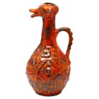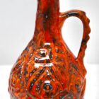 A classic 60s design. Of Fat lava handled vase in the classic sixties decor; with a rough glaze of dark earth-colour