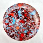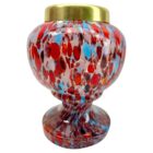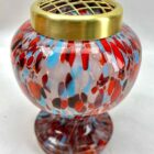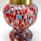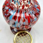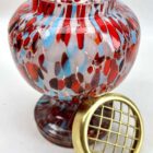 Dramatic multi color decor, cobalt and orange, in hand blown splatter glass vase in the Art Deco style. This design for vases is often called ‘Pique fleurs’ or ‘rose-bowl’ and is supplied with a fitted metal grille to support stems in an arrangement. Special color and technique for any collector.Looks simply stunning. Please don’t hesitate to get in touch with any further questions.
