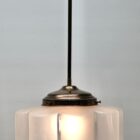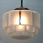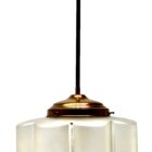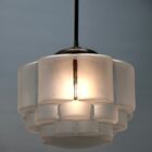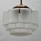 Large Stepped Satin Glass and Brass Fittings Pendant Light, 1930s