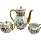 This is a set of 9 pieces Limoges Louveciennes porcelain with hand applied gold highlights and Flowers decorationCute additions for a formal table.Limoges is one of the best porcelain factories in France.Please don’t hesitate to get in touch with any further questions. With Best Wishes Geert Niessen