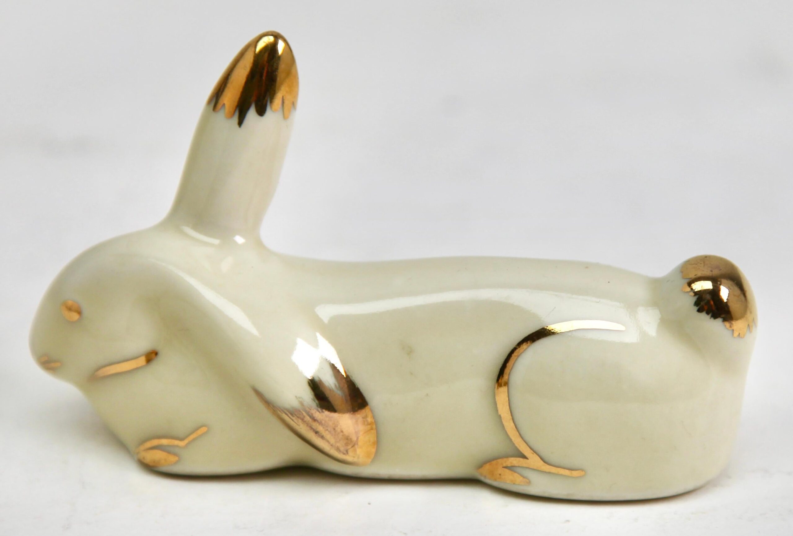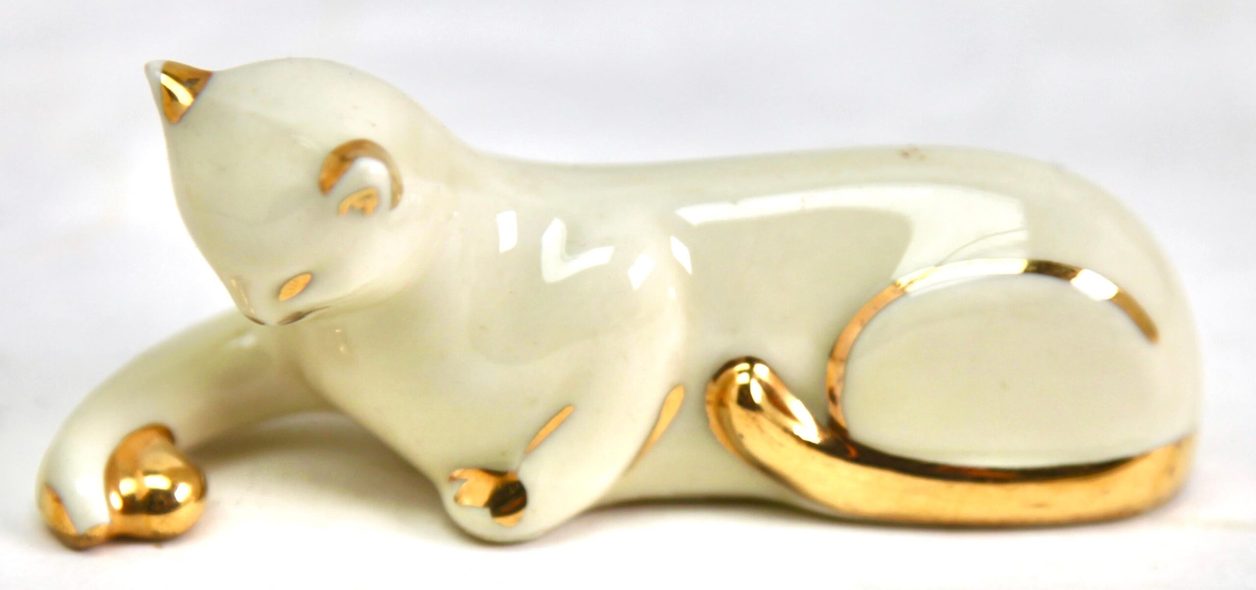 This is a set of 12 pieces in porcelain with hand-applied gold highlights bearing the decorator’s mark.