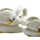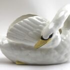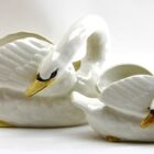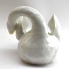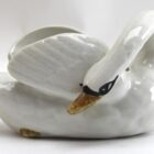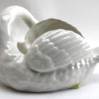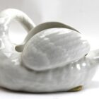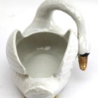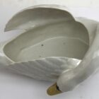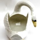 Majolica set of white swans jardinière stamped Imperiale Nimy, Belgium, circa 1900s