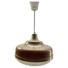 Hanging pendant light from the late 1960s designed in the Scandinavian style and Acrylic Shade Its Classic modernist form and simplicity in design, make it an iconic example of midcentury home lighting.Size shade: Diameter 34 cm Height 24 cmPhotography fails to capture the simple elegance of illumination provided by this lamp.In excellent condition and in full working order. 2 Lamp fittings in the standard size E27.And safe for immediate usage in the WorldWith original patina on all parts. Checked and fully working.We can adjust the height in advance if desired.
