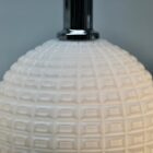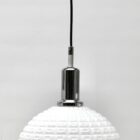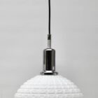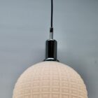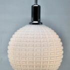 Hanging pendant light from the late 1960s on an adjustable cable, designed in the Scandinavian style and an opaline shade. Its Classic modernist form and simplicity in design, make it an iconic example of midcentury home lighting.
