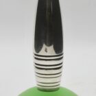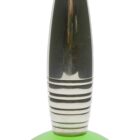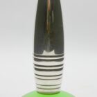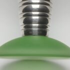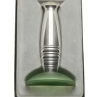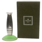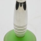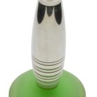 Modernist silver plate SCP candlestick by Christofle with frosted green glass foot.