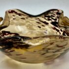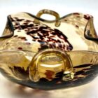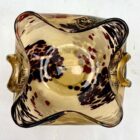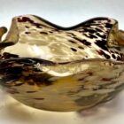 Murano glass Chartreuse and Gold Deco ruffle Biomorphic bowls of 1950sMurano glass biomorphic ruffled edge bowls gold fleck made in Italy.Rare Murano hand blown iridescent surface art glass flared rim ribbed bowl.The piece is in excellent condition and a real beauty!Photography fails to capture the colour en the beauty of the piece.In real-time, they look stunning.
