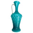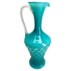 Opaline di Florence (Empoli) opalescent Italian art glass pitcher dating it to the late 1950s or early 1960s. Beautiful hand-blown opal and hand-applied white handle. The piece is in excellent condition and a real beauty!