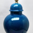 Inspired by a centuries-old technique of Chinese ceramics, this elegant table lamp is a bright and dramatic shade of turquoise with a fine crackle glaze. If wanted we have the same on in-stock so we have a pair.