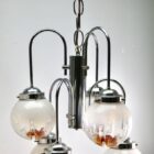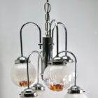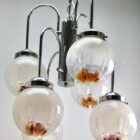 Pendant by Mazzega with 6 Globes of Clear Glass with Orange Inclusions