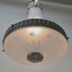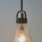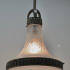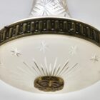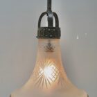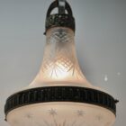 Pendant Chandelier Cast Brass with Cut to Clear Glass Shade, Late 19th Century