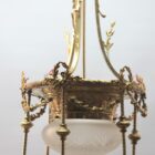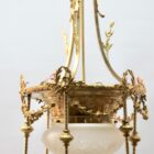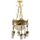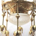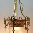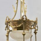 This classically designed period chandelier is made of brass.