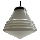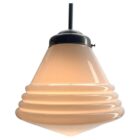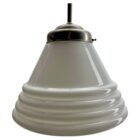 From the range Phillips this centre-light is on a Rod 60 cmThe lamp has a fitting on a Solid chrome plate and holds a shade of opaline glass.Size Schade: 31 cm Diameter. / Height 32 cmWe are happy to adjust the height to your wishes at no extra cost. In good condition and in full working order Fitting E27 And has been checked carefully.The lamp is provided with a screw terminal block suitable for connection to any ceiling light electrical cable.In excellent condition and in full working order. No problem, the lamp works everywhere in the world.Please don’t hesitate to get in touch with any further questions. With best wishes Geert.