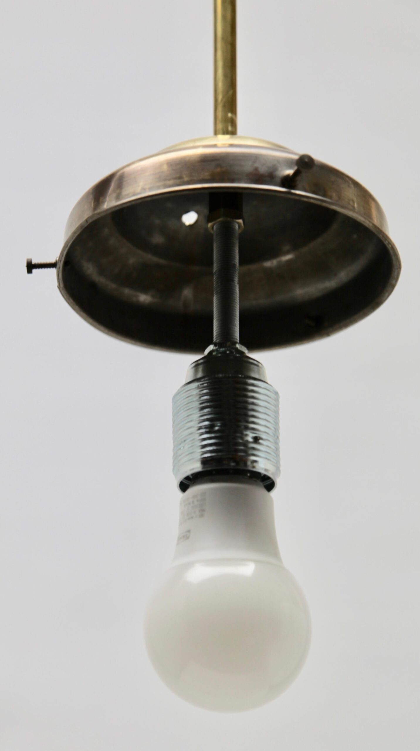 The lamp is provided with a screw terminal block suitable for connection to any ceiling light electrical cable.