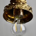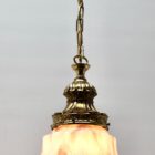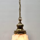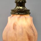 The lamp has a fitting on a Solid Brass plate and holds a shade of opaline glass.